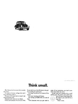Outro gênio da comunicação, Bill Bernbach fez o Fusca vender como água na época da Segunda Guerra Mundial usando os mesmos fundamentos. Criou uma peça que exibia uma imagem simples e um texto pequeno que fez as pessoas escolherem o Fusca como segundo veículo da família.